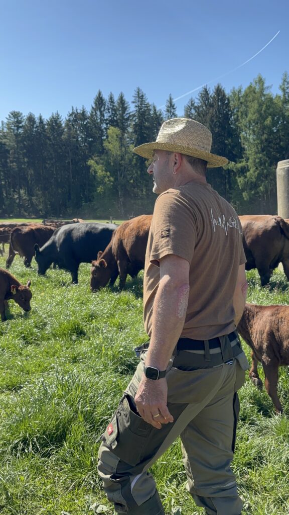 Das Futter für unsere Tiere bauen wir selbst an, wir geben ihnen Zeit zum Wachsen und sorgen für eine natürliche, stressfreie Haltung. Genau das merkt man später auch an der Fleischqualität ,zart, aromatisch und ehrlich.
